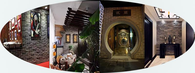 Chinoiserie Artificial Stone applied in the interior wall, partition wall or partly decoration, can create the oriental appeal filled with ecology, nature, connotation and dignified of inner space through the special material and color of Faux stone. From the perspective of Chinese style, there are two classical Chinese elements: one is southern amorous feelings which is presented by the grey-green brick, white wall and landscape architecture. Most colors of grey-green antique brick is gray tone with different depth, the surface is slick or antique looking. With the application of this kind of cultured stone on the wall, and decorated with Chinese classical accessories such as Chinese brush drawing, calligraphy, wall ornaments, etc.can easily build the millennial culture atmosphere and elegance freshness of Chinese southern town.